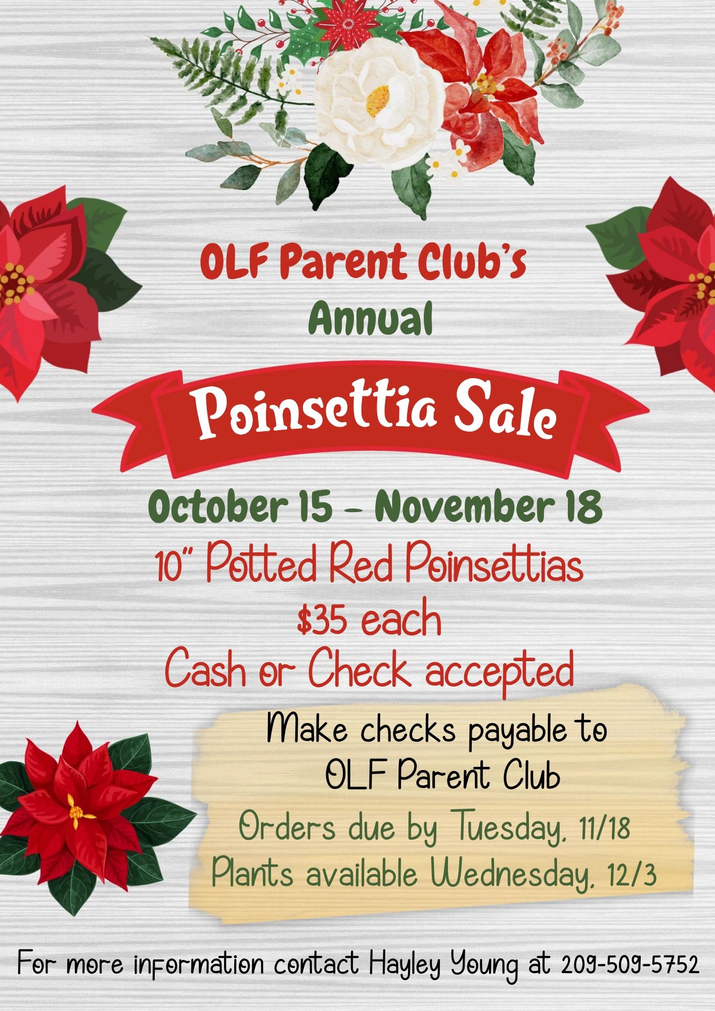 Adorn your doorstep with beautiful poinsettias sold by the OLF Parents Club every December.
